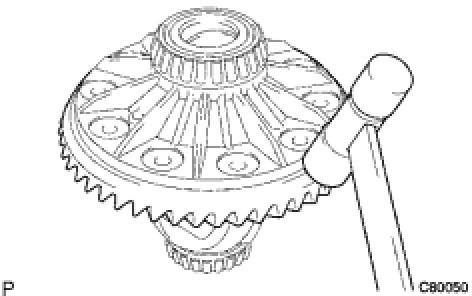 (c) Using a plastic hammer, tap on the ring gear to separate it from the differential case.