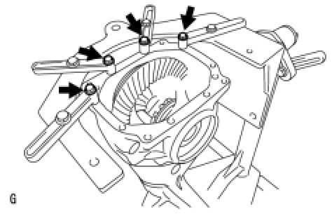 Observe the dial indicator to ensure that the shape of the differential carrier does not change more that 0.2 mm (0.008 in.).
