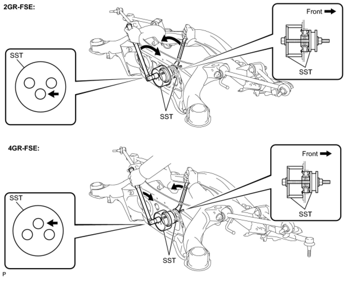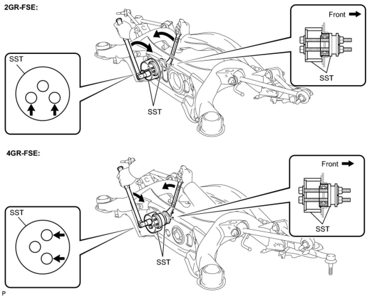 - Screw the 2 bolts of SST equally into the 2 holes of the rear differential mount.