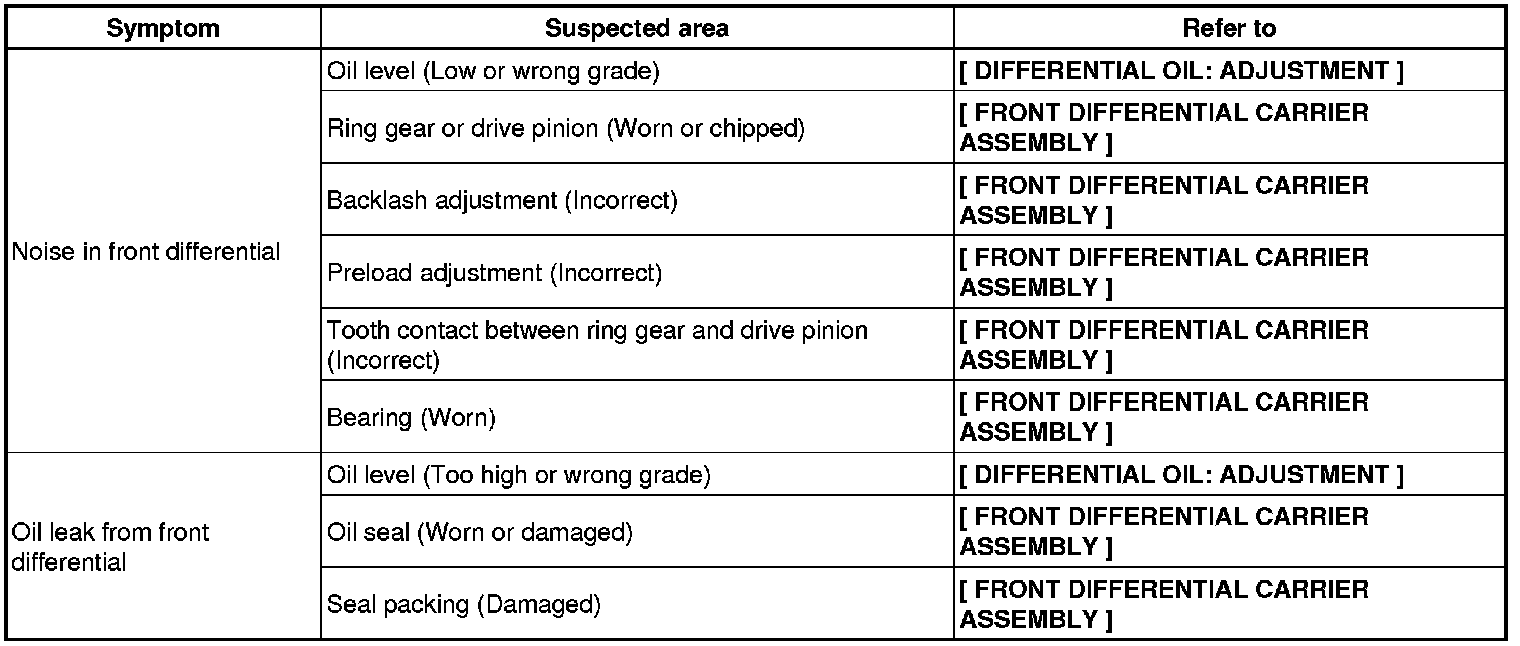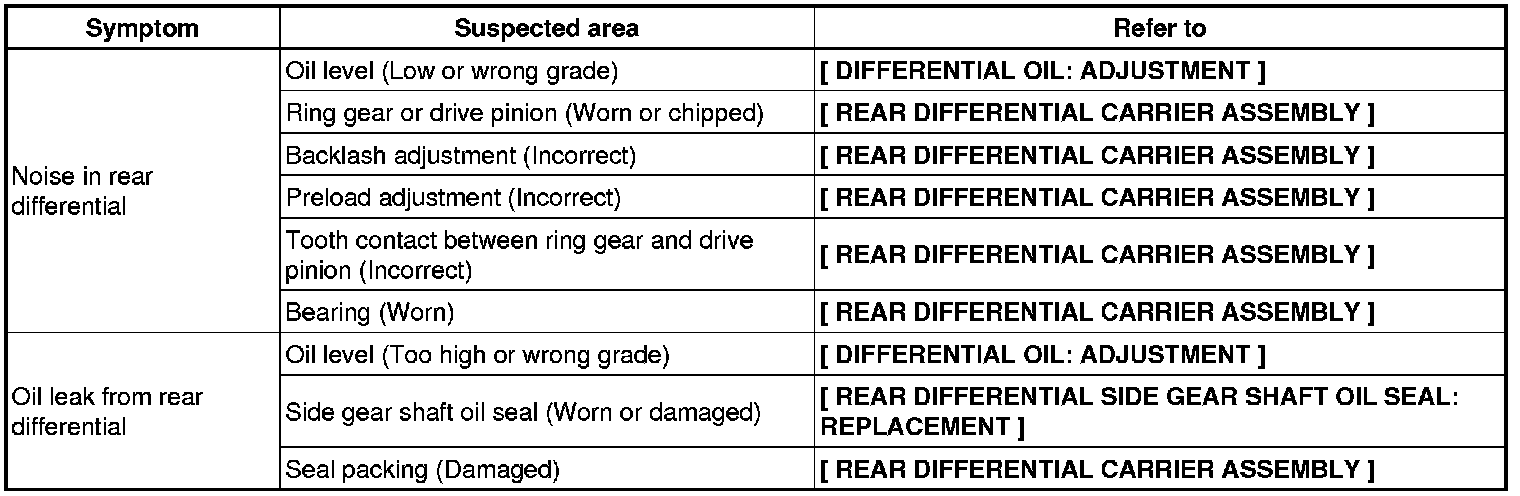 DIFFERENTIAL: DIFFERENTIAL SYSTEM: PROBLEM SYMPTOMS TABLE