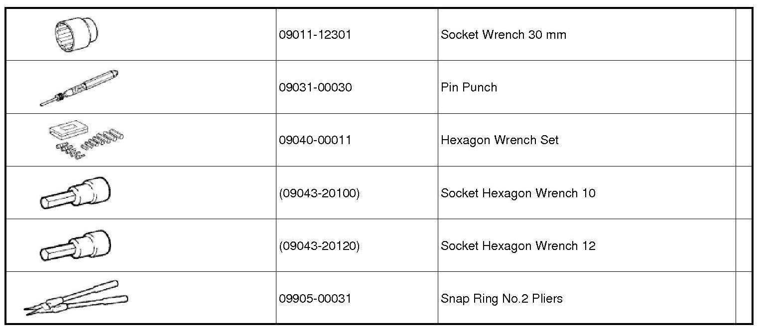 PREPARATION: DIFFERENTIAL: RECOMMENDED TOOLS