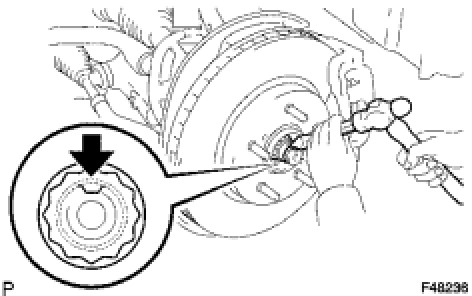 (c) Align the shaft splines and install the drive shaft assembly with a brass bar and hammer.
