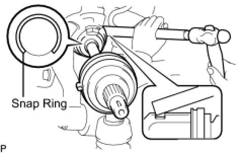 It is possible to determine if the inboard joint shaft is properly engaged (the shaft is in contact with the pinion shaft, and the snap ring is engaged in the pinion gear) based on the sound or feeling when the shaft is driven in.