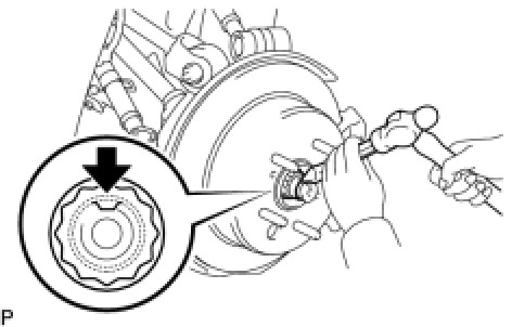 (c) Align the shaft splines and install the drive shaft assembly with a brass bar and hammer.