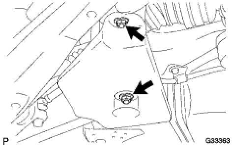(a) Install the No. 2 differential support protector to the rear suspension member brace with the 2 nuts.