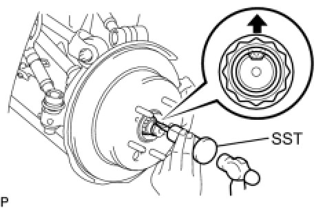(a) Using SST and a hammer, release the staked part of the axle shaft nut.