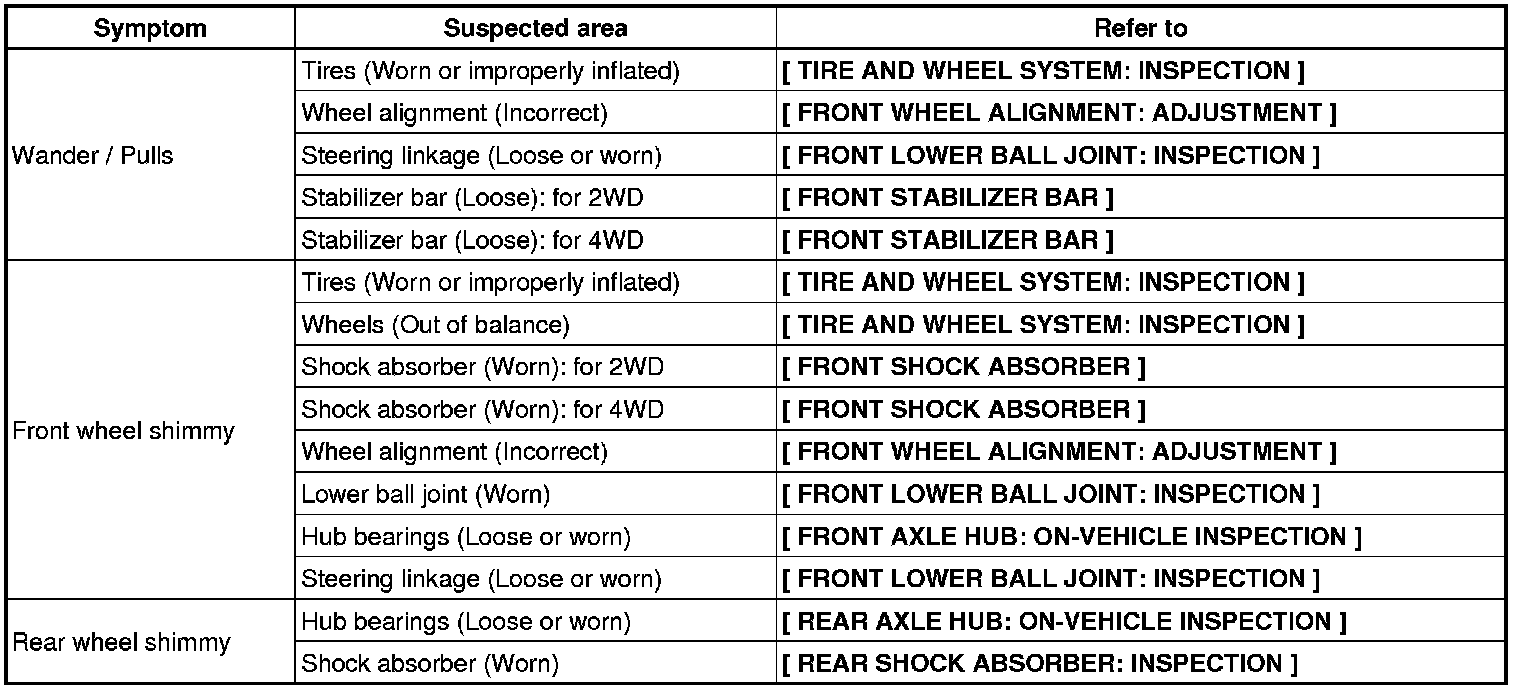 AXLE: AXLE SYSTEM: PROBLEM SYMPTOMS TABLE