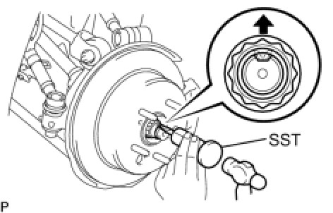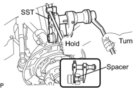 - Make sure that the SST is securely positioned on the rear axle carrier spacer.