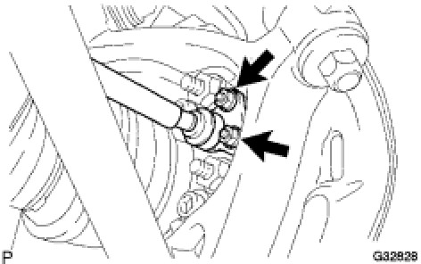 (a) Using SST and a hammer, release the staked part of the axle shaft nut.