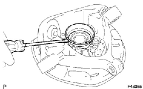(a) Using a screwdriver, remove the No. 2 rear wheel bearing dust deflector from the rear axle carrier sub-assembly.
