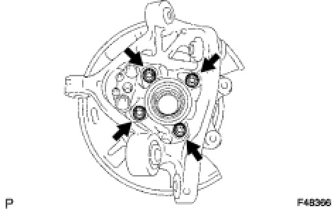 (b) Remove the 4 bolts, axle hub and bearing assembly from the rear axle carrier sub-assembly.
