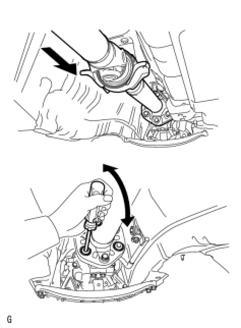 (g) Push the rear propeller shaft straight ahead to compress and pull out the propeller shaft from the centering pin of the differential.