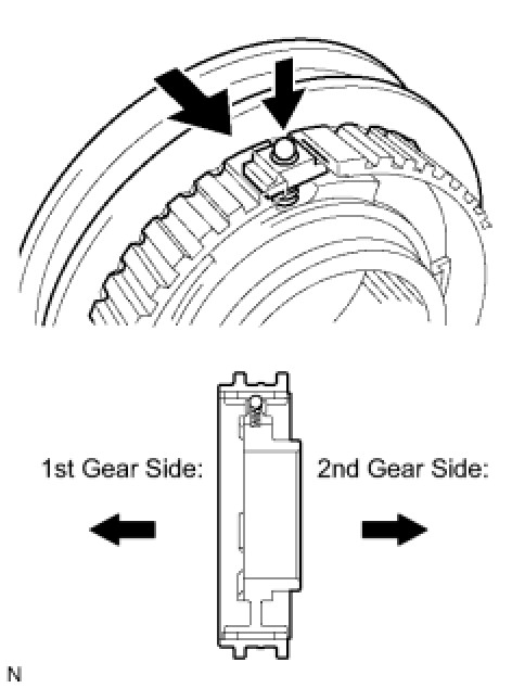 (e) Place the ball in the hole of the shifting key, and install the hub sleeve while pushing in the ball.