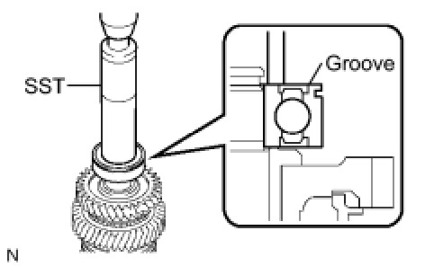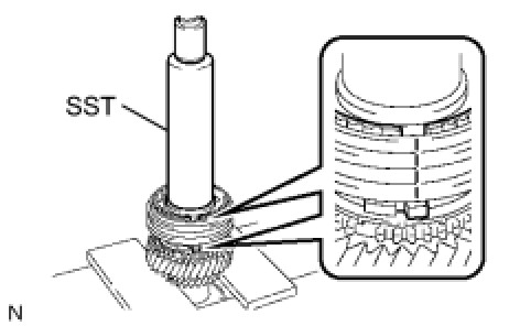 (a) Using SST and a press, install a new needle roller bearing inner race.