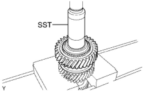(c) Using SST and a press, install the No. 1 transmission clutch hub onto the counter gear.