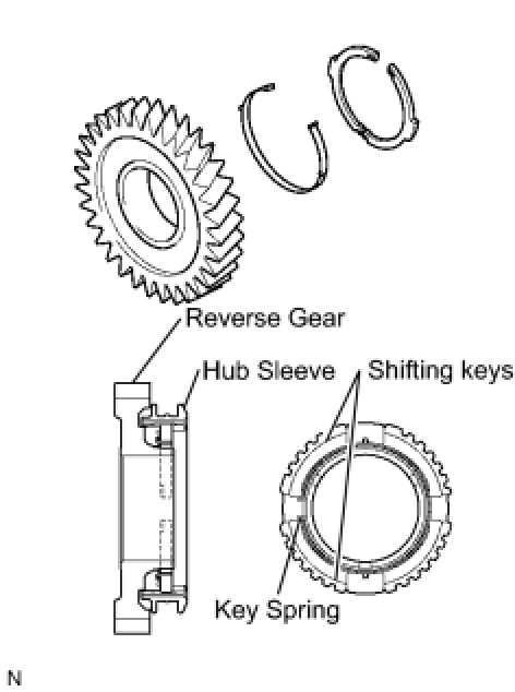 (a) Install the key spring and 2 shifting keys onto the reverse gear.