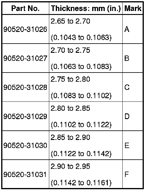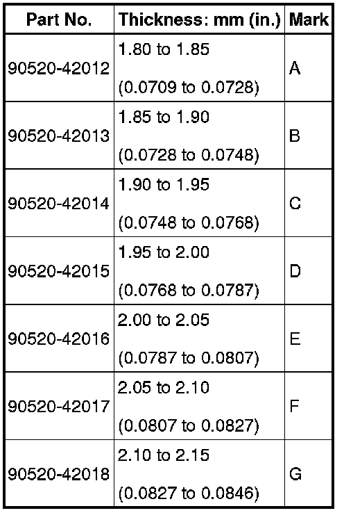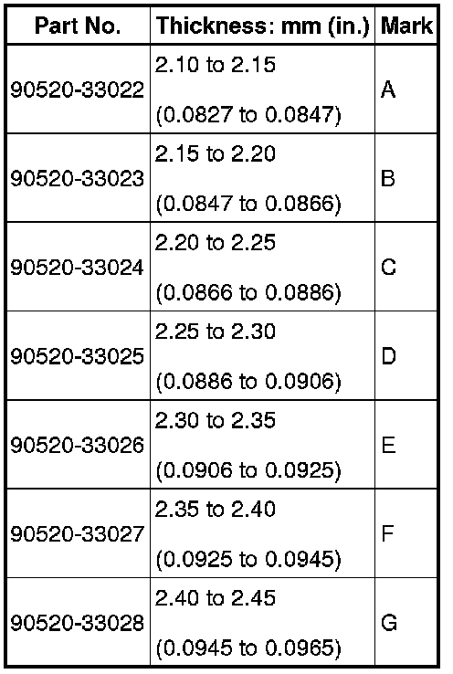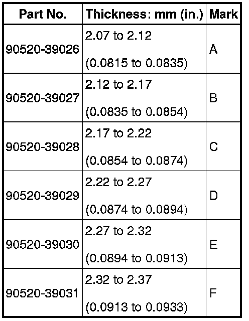 If the clearance is outside the specification, replace the defective gear, thrust washer or shaft.
