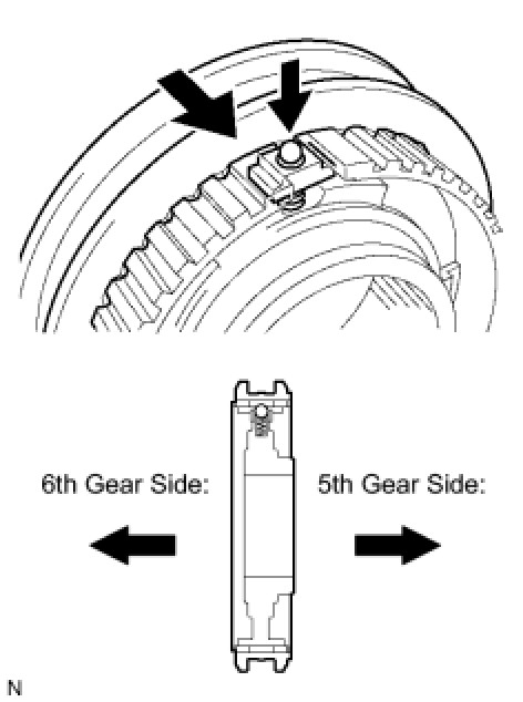 Align the convex portion of the synchronizer ring with the groove of the clutch hub.