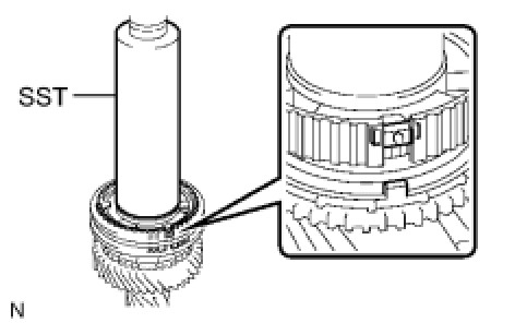 (c) Using SST and a press, install the clutch hub onto the input shaft.