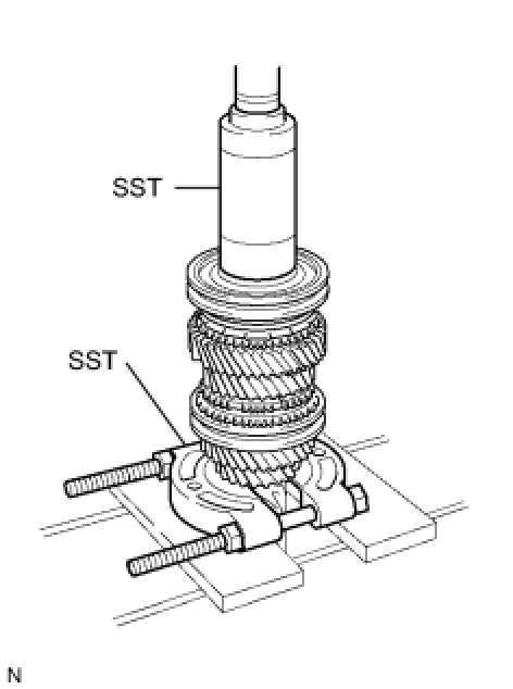 (b) Using SST and a press, install the No. 2 transmission clutch hub sleeve onto the input shaft.