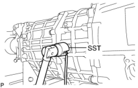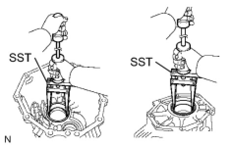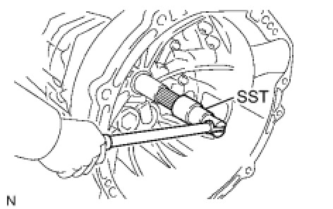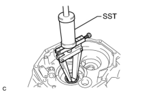 (a) Using SST, remove the front transmission case bearing from the front transmission case.