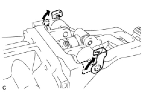 (a) Pull up the locks of the shift lever pins, and remove the 2 shift lever pins.