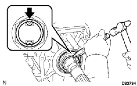 (a) Using a plastic hammer, remove the extension housing dust deflector.