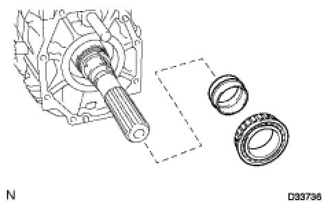 (f) Remove the No. 2 taper roller bearing and spacer.