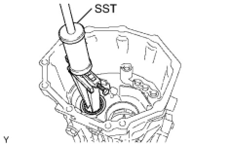 (a) Using SST, remove the transmission case oil seal from the front transmission case.
