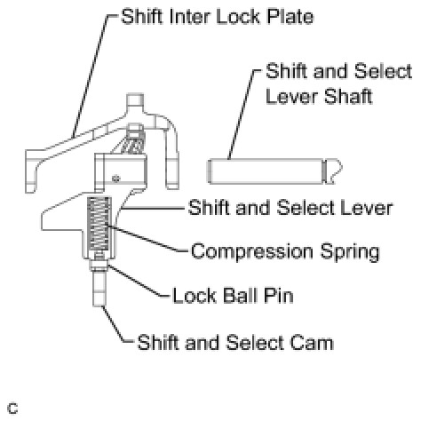 (f) Remove the lock ball pin and compression spring from the shift and select lever.