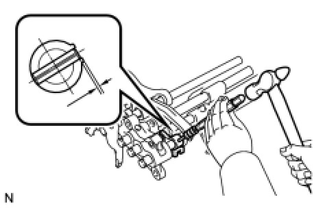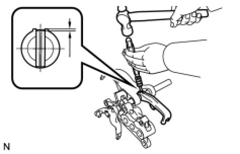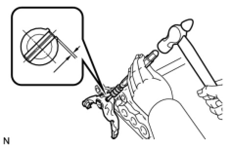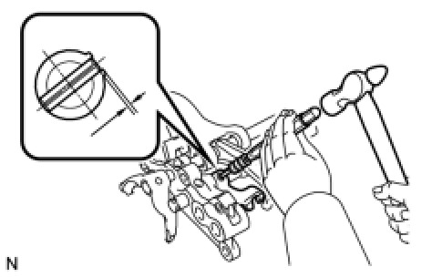 (a) Using a pin punch (5 mm (0.20 in.)) and hammer, tap a new slotted spring pin to install the No. 1 gear shift head and No. 1 gear shift fork shaft.