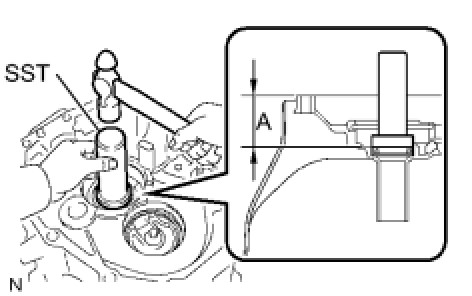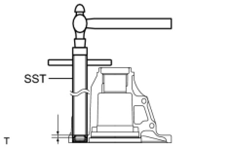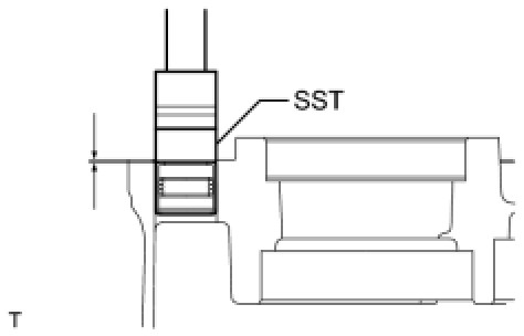 (a) Using SST and a hammer, tap a new oil seal into the front case in accordance with the dimension specified in the illustration.