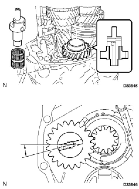 Make sure that the reverse idler gear faces the correct direction as shown in the illustration.