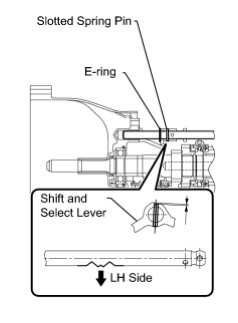 Ensure the shaft is facing the correct direction when tapping the slotted spring pin into the shift and select lever shaft.