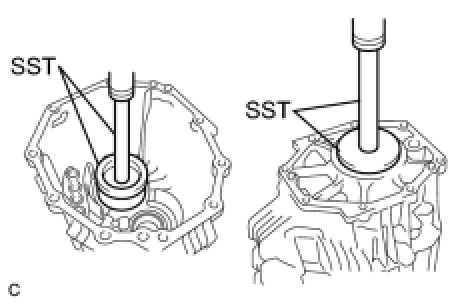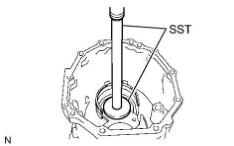 (a) Using SST and a hammer, install a new rear extension housing oil seal.
