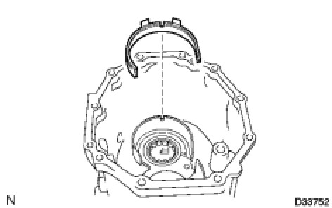 Insert the protruding part of the oil separator packing seal into the groove on the rear transmission case.