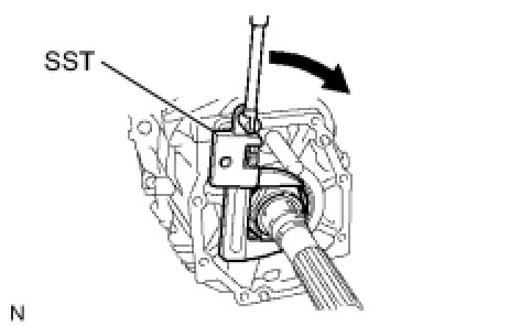 (c) Using SST, temporarily tighten a new nut until there is no slack in the output shaft.