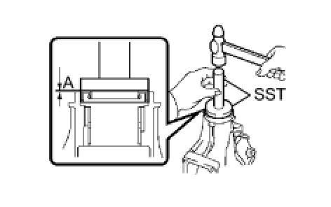 (a) Using SST and a hammer, install a new oil seal into the extension housing in accordance with the dimension specified in the illustration.