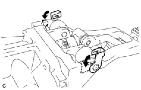(a) Using a pin punch (dia5 mm) and a hammer, install the shift and select lever shaft support and a new slotted spring pin onto the shift and select lever shaft.