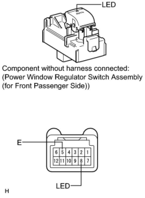 (1) Apply battery voltage to the power window regulator switch assembly and check that the LED illuminates.