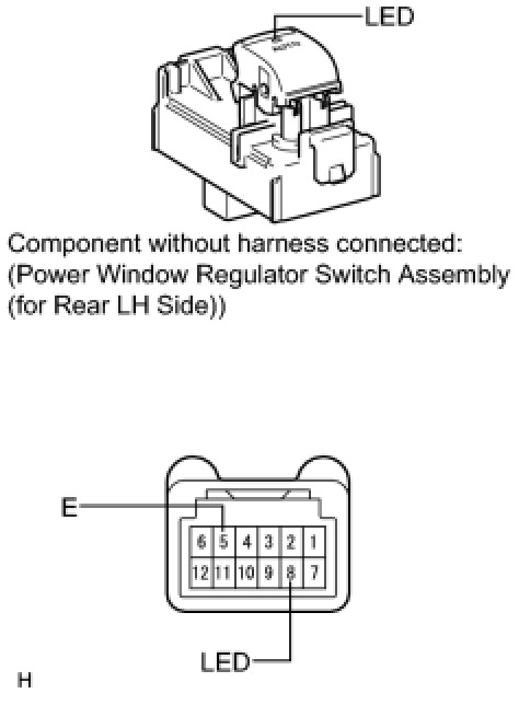 (1) Apply battery voltage to the rear power window regulator switch assembly and check that the LED illuminates.