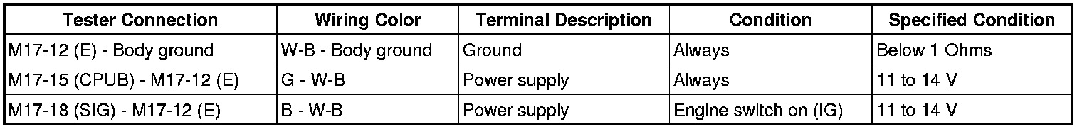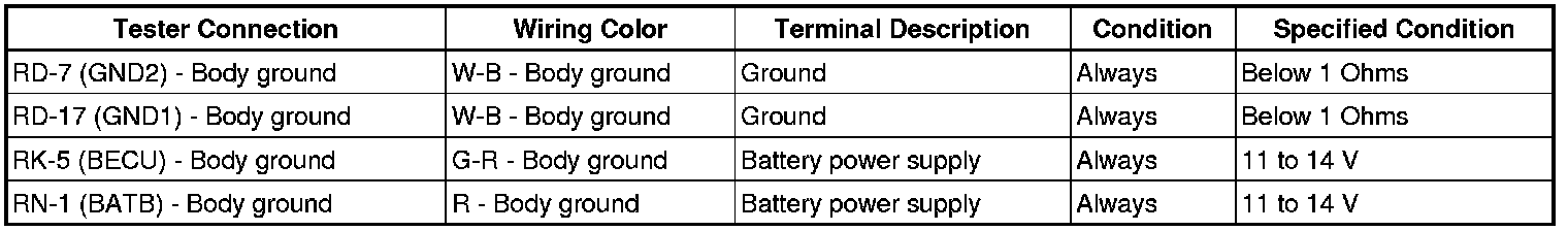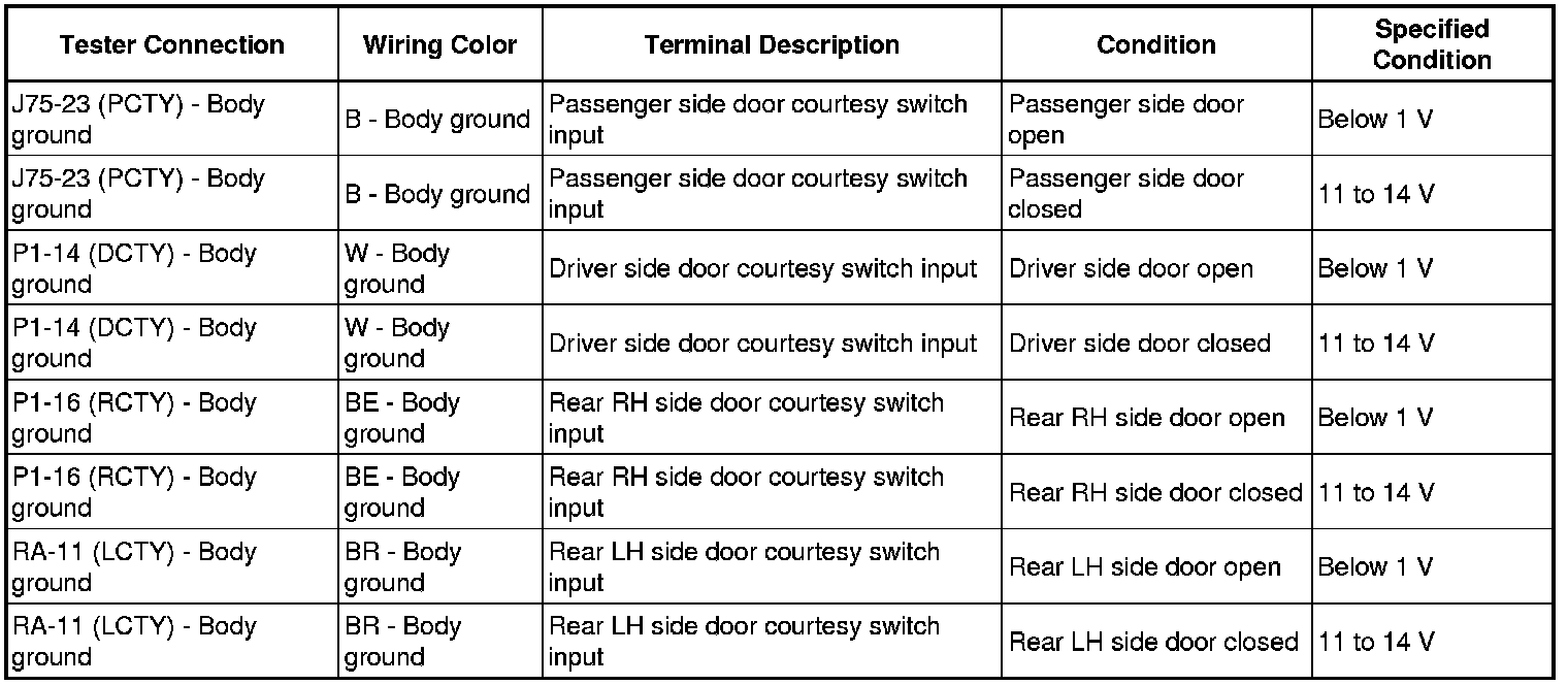 If the result is not as specified, the main body ECU RH (cowl side junction block RH) may have a malfunction.