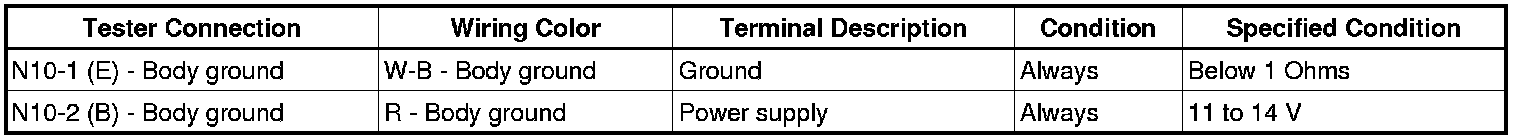 If the result is not as specified, there may be a malfunction in the wire harness.