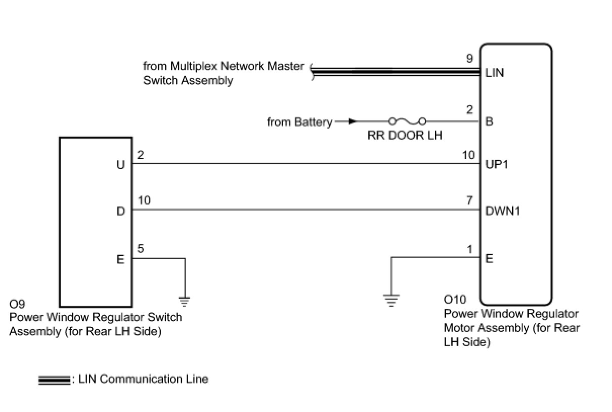 - When the ECU determines that the power window regulator motor assembly (for rear LH side) has a malfunction, DTC B2311 is set.