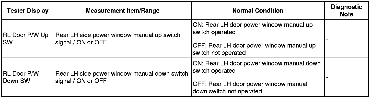 Rear Power Window LH Does Not Operate With Rear Power Window Switch LH