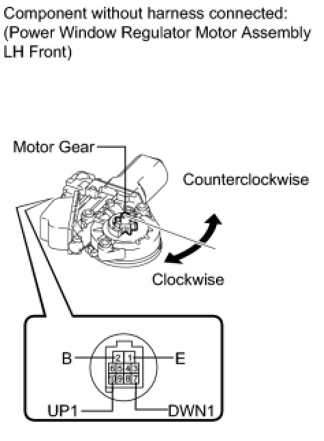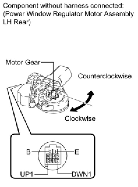 (b) Apply negative (-) battery voltage to connector terminals 1 (E) and 7 (DWN1) or 10 (UP1).