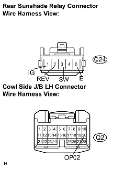 (a) Disconnect the Q24 rear sunshade relay connector.