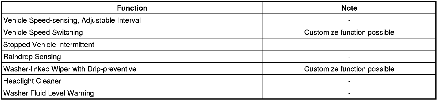 The vehicle speed sensing intermittent wiper function operates as a fail-safe function if there is a problem with the auto wiper function.