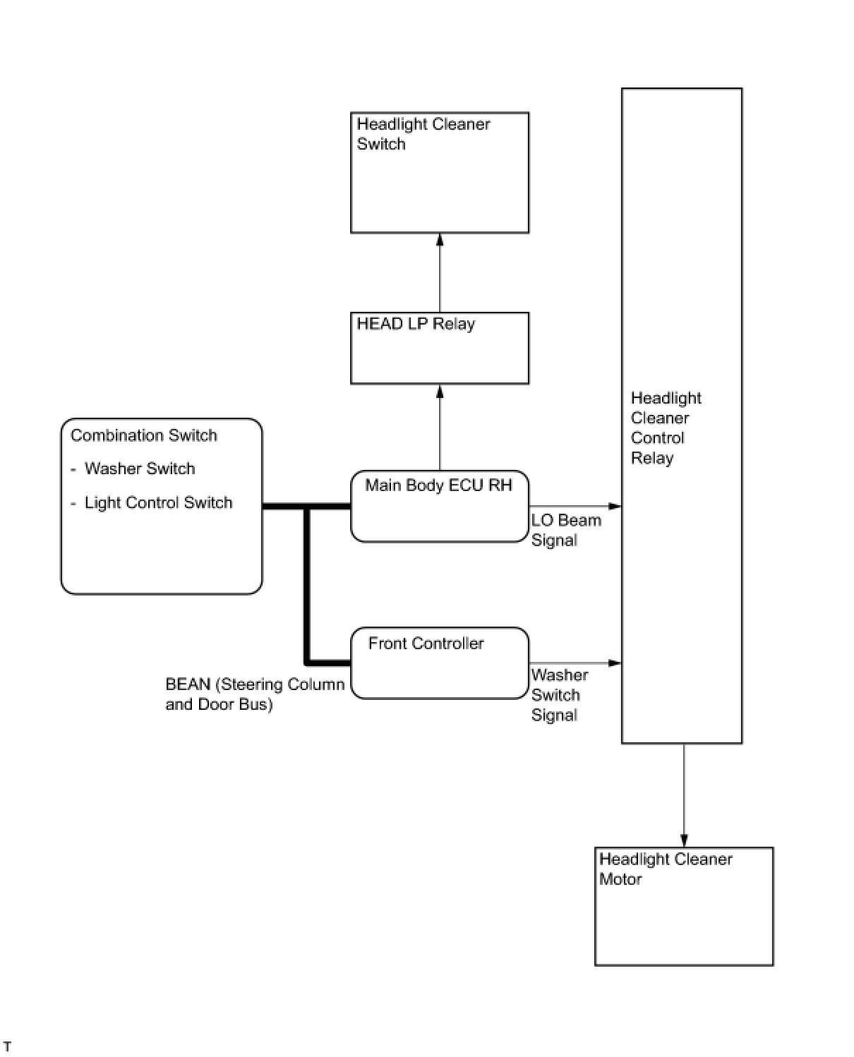 (c) Front wiper operation is based on combination switch and other signals received by the main body ECU LH.