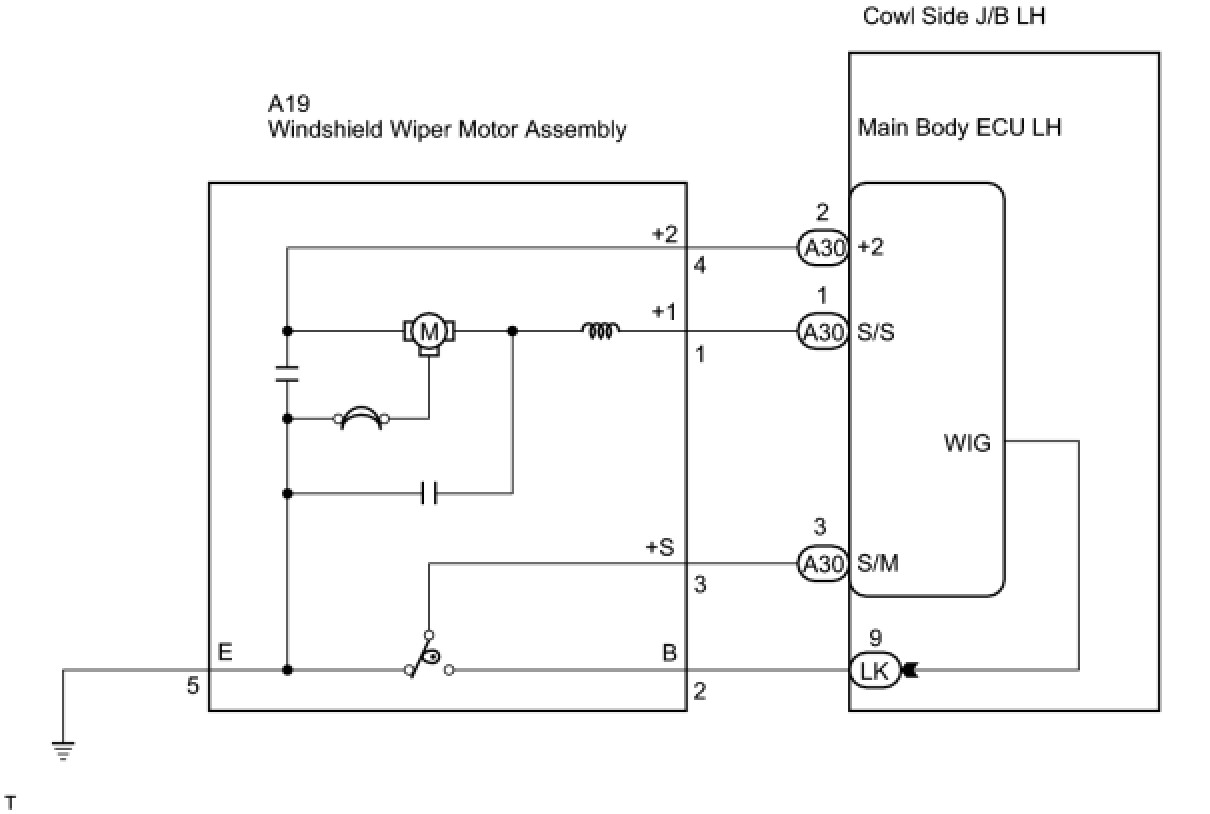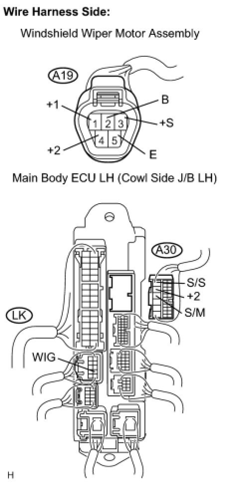 3. CHECK HARNESS AND CONNECTOR (WINDSHIELD WIPER MOTOR - MAIN BODY ECU LH (COWL SIDE J/B LH))